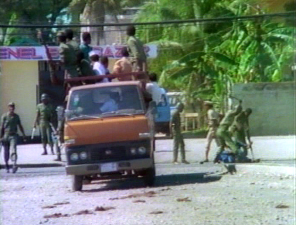 The assassination of the Justice Minister of Haiti Guy Malary and his bodyguards (a video still from the documentary Rezistans, courtesy of Crowing Rooster Arts)